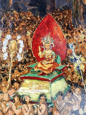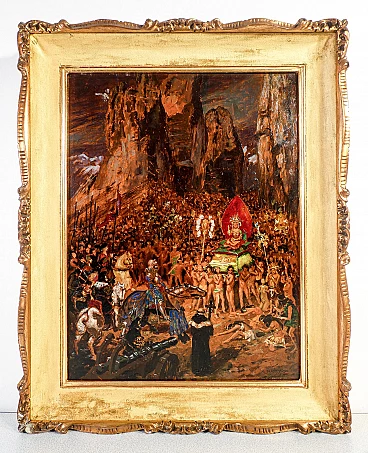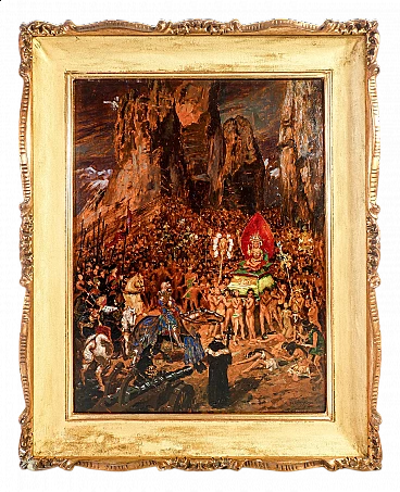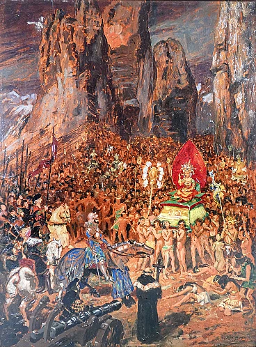 Gustave Alaux, Incontro fra Pizarro e il sovrano Inca Atahualpa, olio su tavola, inizio '900