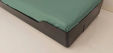 Le condizioni del letto singolo sono ottime: la scocca presenta nervature “disegnate” sui quattro lati e rivestimento in velour sintetico nella parte interna entrambi bordati in gomma nera, pianale di irrigidimento su cui poggia il materasso in legno fermato nella parte inferiore. Sono presenti quattro piccolissime striature sulla scocca.