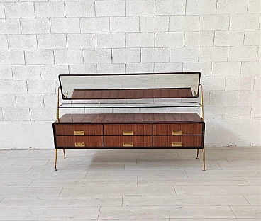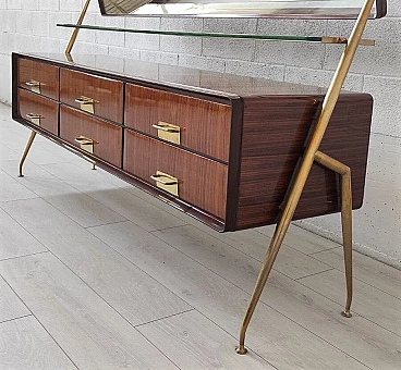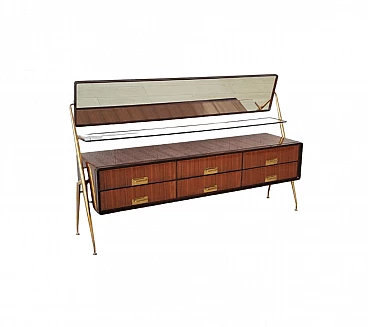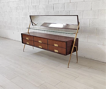 Cassettiera in legno impiallacciato con specchio basculante di Silvio Cavatorta, anni '50