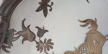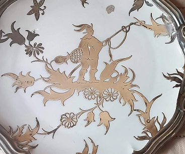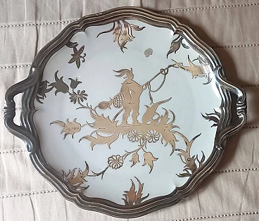 Vassoio in ceramica con decoro in argento di Gio Ponti per Rosenthal, anni '30