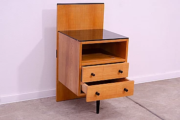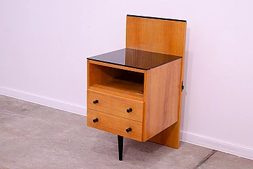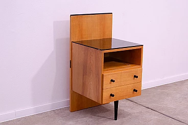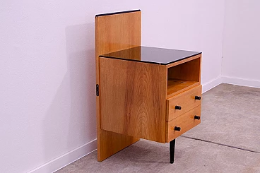 Comodino in faggio e vetro di Mojmír Požár per UP Závody, anni '60