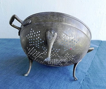 Scolapasta in ottone massiccio, anni '70