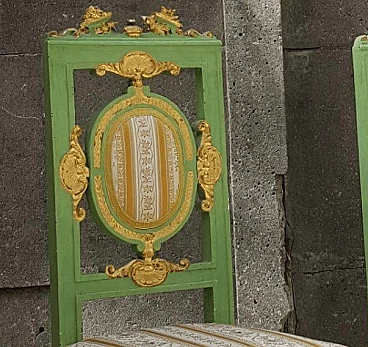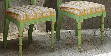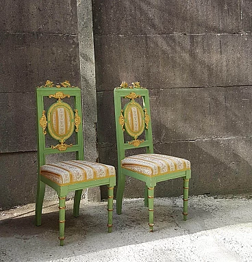 Coppia di sedie in legno laccato verde e dorato, seconda metà dell'800