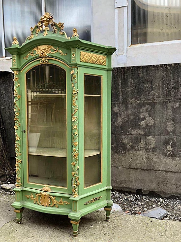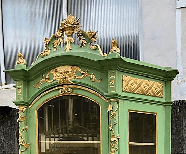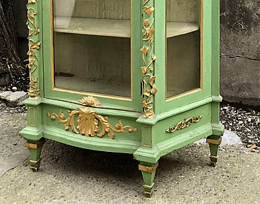 Vetrina in legno laccato verde e dorato, seconda metà dell'800