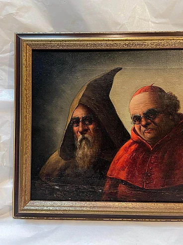 Personaggi clericali, olio su tela con cornice lignea, ‘800