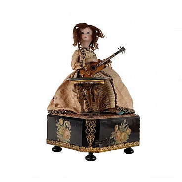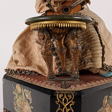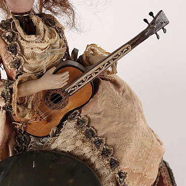 Automa di donna con chitarra in legno, bronzo, porcellana e tessuto, '800