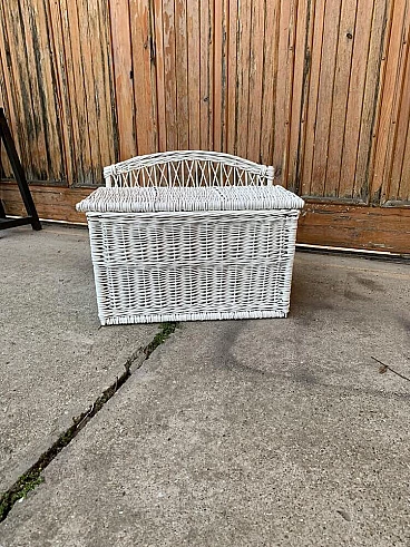 Cassapanca ungherese in vimini bianco, anni '90
