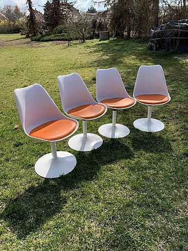 4 Sedie girevoli Tulip arancio attribuite a Eero Saarinen per Knoll, 1956
