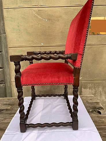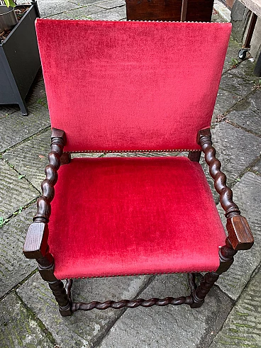 Trono in legno con sedile e schienale in velluto rosso, '800
