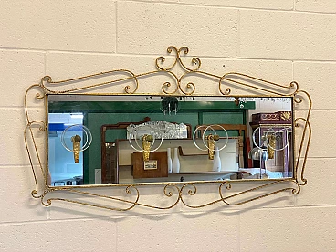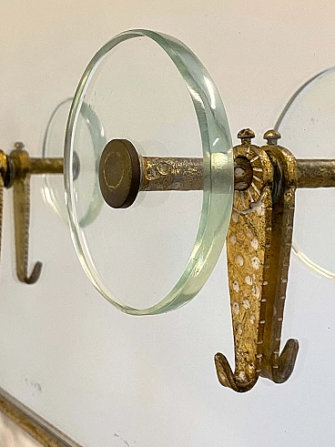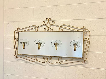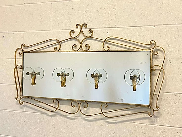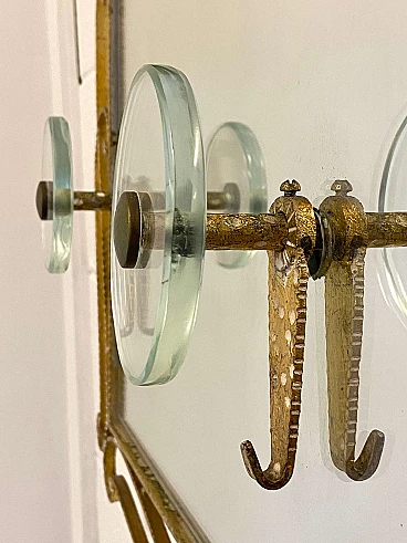 Appendiabiti in ferro battuto dorato e specchio di Pier Luigi Colli, anni '50