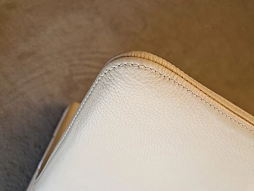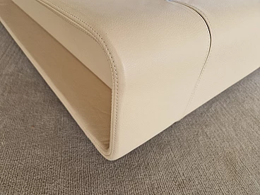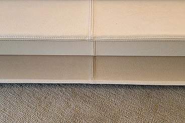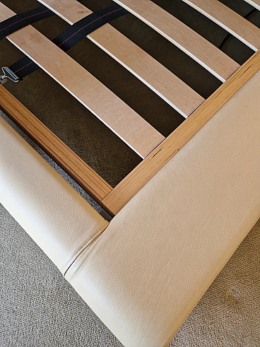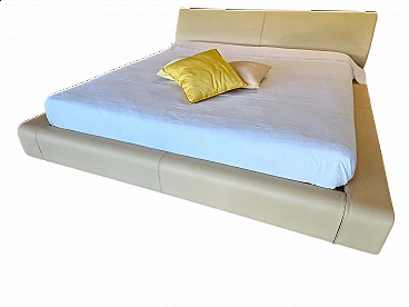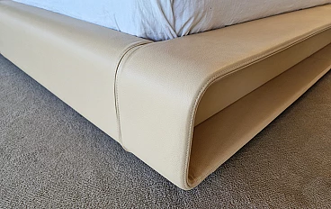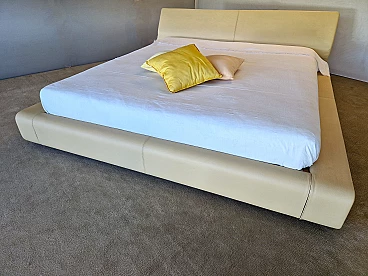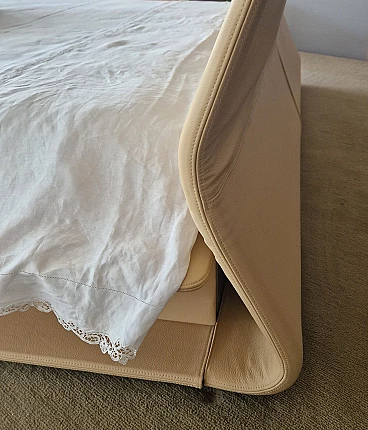 Letto matrimoniale Clip di Patricia Urquiola per Molteni&C, anni 2000. L'eleganza del disegno di Urquiola, nota architetto-designer spagnola con laurea al Politecnico di Milano dove svolge la professione, si traduce in un comfort di grande qualità con Clip, letto matrimoniale imbottito dalla linea unica prodotto per Molteni&C. La testata, proseguendo per tutta la lunghezza del letto fino alla pediera e ripiegandosi su sé stessa, disegna una forma molto originale che ricorda una clip. La testata può assumere diverse inclinazioni (vedi foto), mentre il letto può accogliere ogni tipo di rete di spessore variabile da 65 a 175 mm grazie al sistema di appoggio regolabile. Il rivestimento, anche in pelle, è completamente sfoderabile. Il prodotto proposto è completamente rivestito in vera pelle color giallo-avorio L73 e le cuciture, con finitura sartoriale, sono allineate all'alta qualità Molteni. Prodotto da esposizione in perfette condizioni.