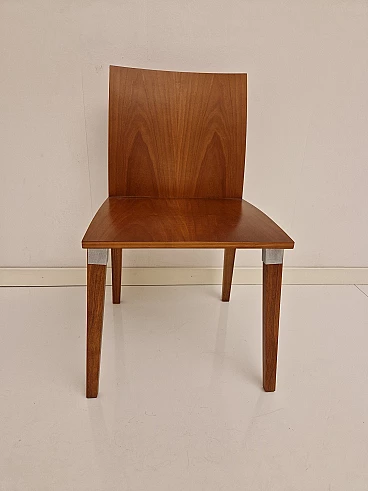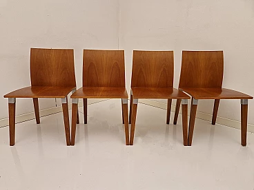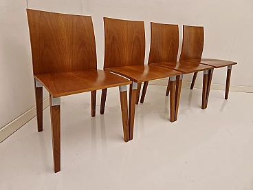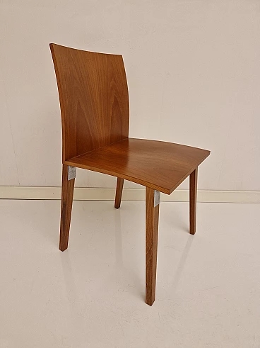 Sedia HO di Luca Meda per Molteni&C, anni 2000. Quattro sedie disponibili, il prezzo esposto è per un pezzo. HO è un'insolita sedia dalle caratteristiche innovative che si struttura intorno a un unico elemento: un giunto metallico di grande robustezza che collega gambe, seduta e schienale; il risultato è una sedia solida e leggera, dalla piacevole presenza. Il gruppo di quattro sedie che proponiamo è realizzato con seduta e schienale nella nobile essenza di noce nazionale. Prodotti da esposizione in ottimo stato senza evidenza di segni o difetti.