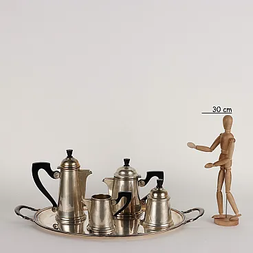 Servizio da caffè e tè in argento di Greggio Rino e vassoio di Schiavon Angelo, anni '50
