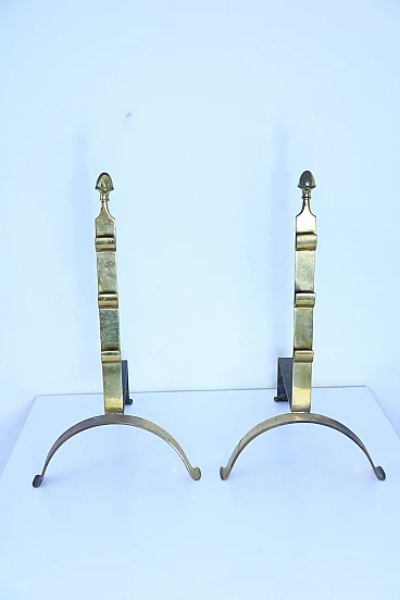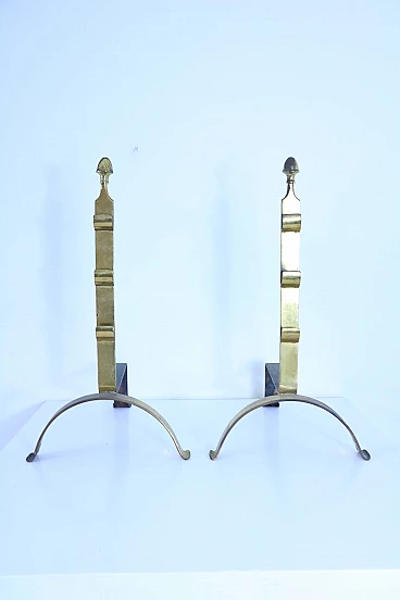 Coppia di alari in ottone, anni '50