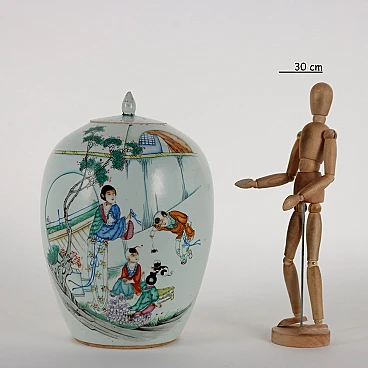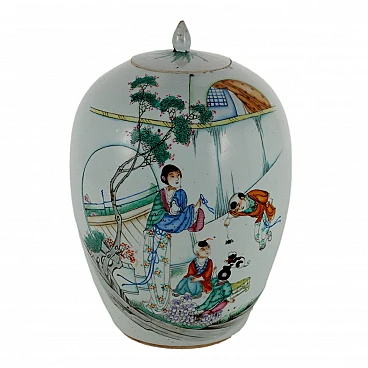 Potiche in porcellana con scena e scritte cinesi, inizio '900