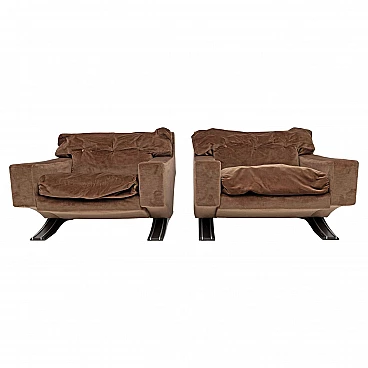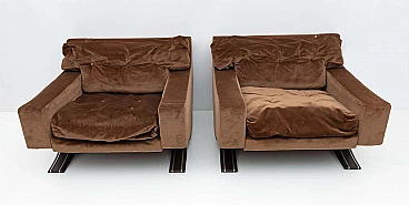 Coppia di poltrone in velluto marrone di Franz Sartori per Flexform, 1965