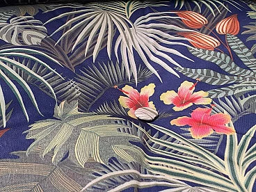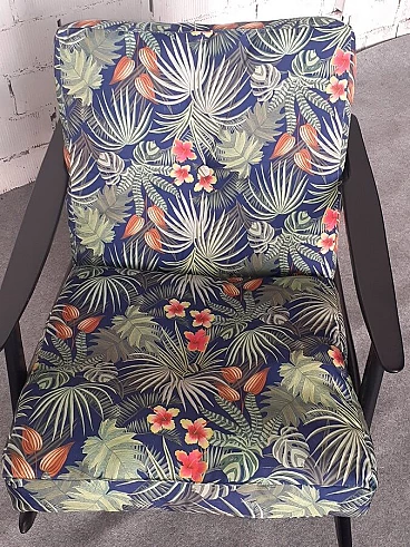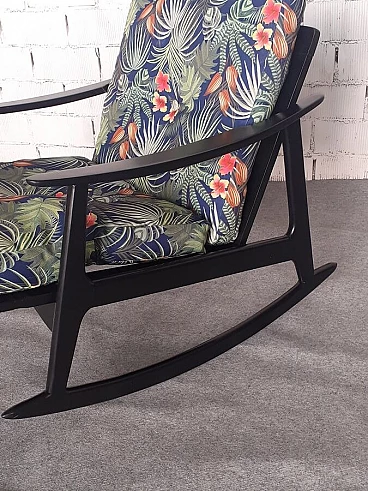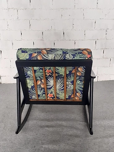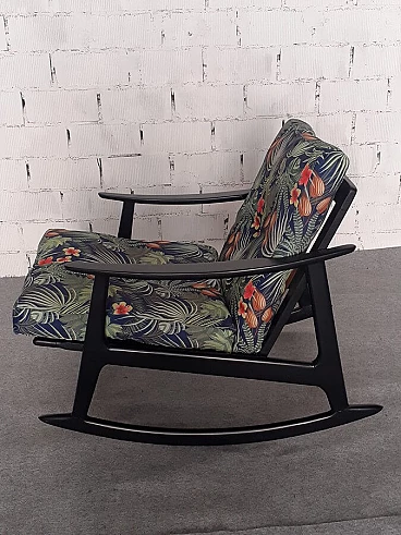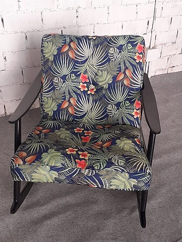 Sedia a dondolo in legno e tessuto floreale, anni '50