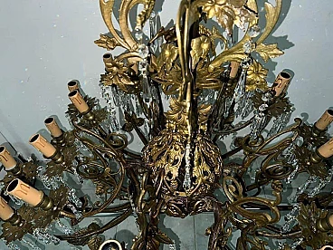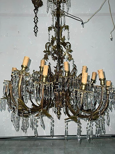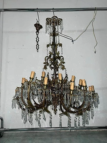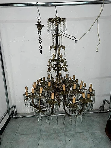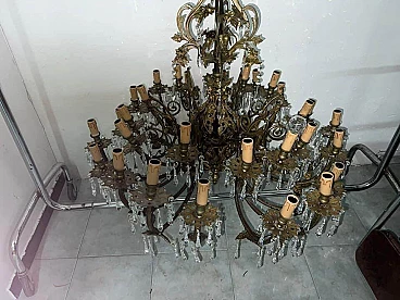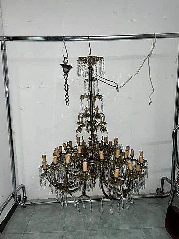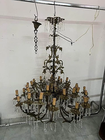 Lampadario a trenta luci in metallo e cristallo, inizio '900