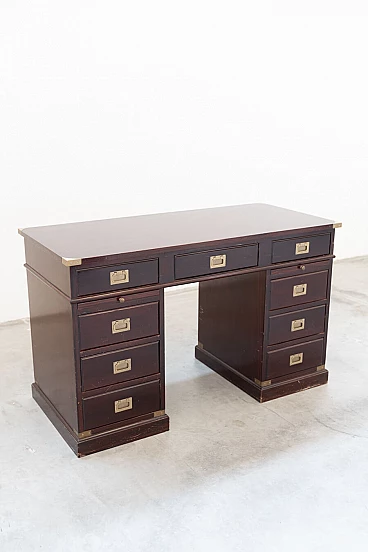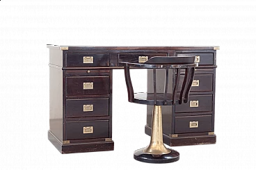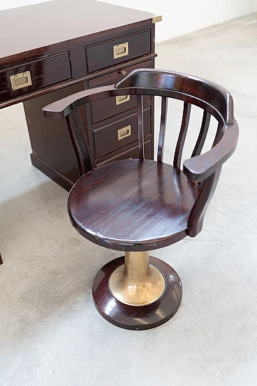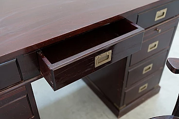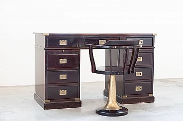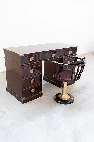 Scrivania in mogano e sedia girevole in stile navale, anni '70