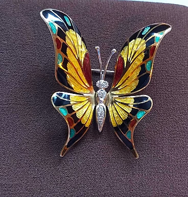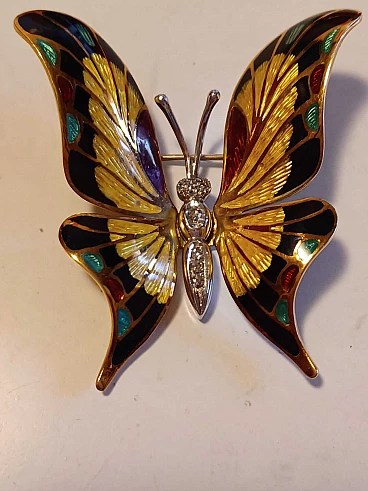 Spilla a farfalla in oro, smalti e brillanti, anni '70