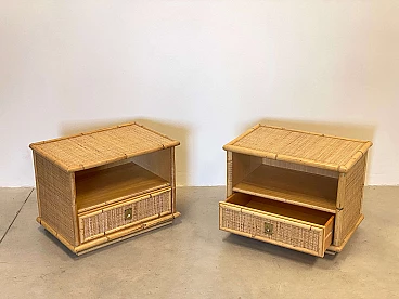 Coppia di comodini in vimini e bambù di Dal Vera, anni '70