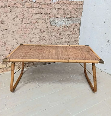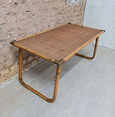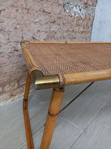 Tavolino pieghevole in legno, bambù e ottone, anni '70