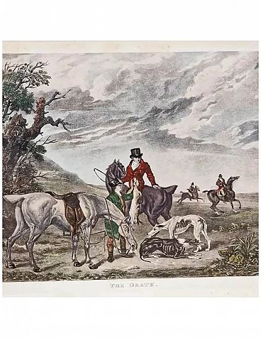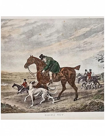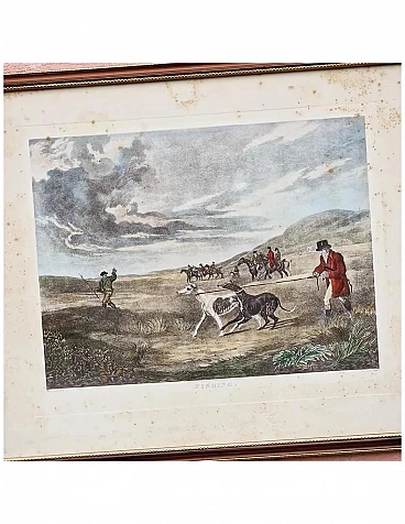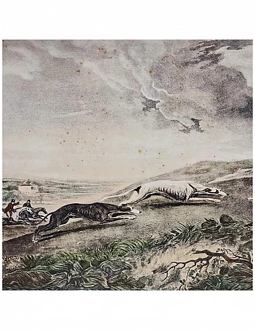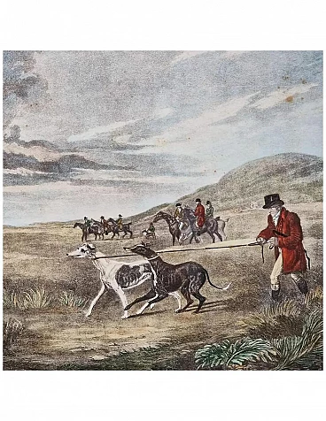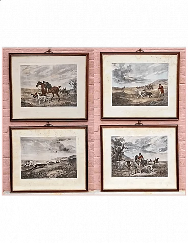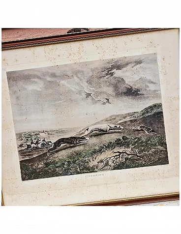 4 Litografie acquarellate con caccia alla lepre, fine '800