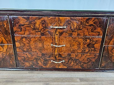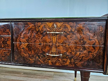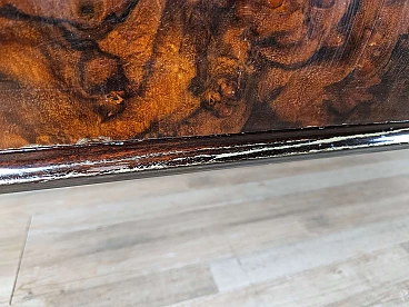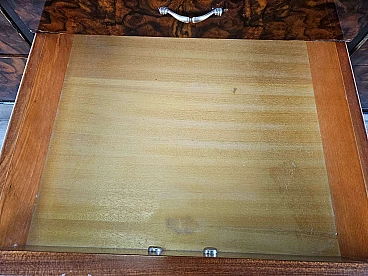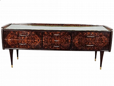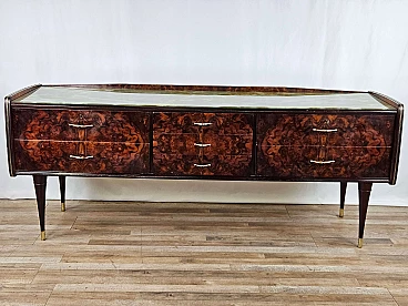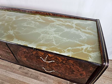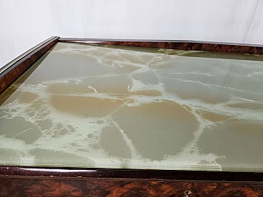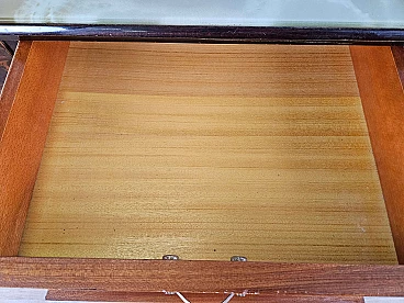Cassettiera in legno e ottone con piano in vetro marmorizzato, anni '50