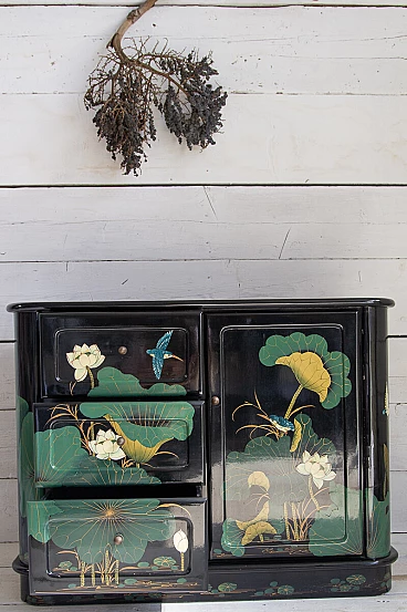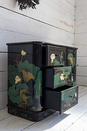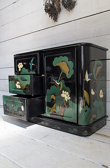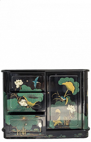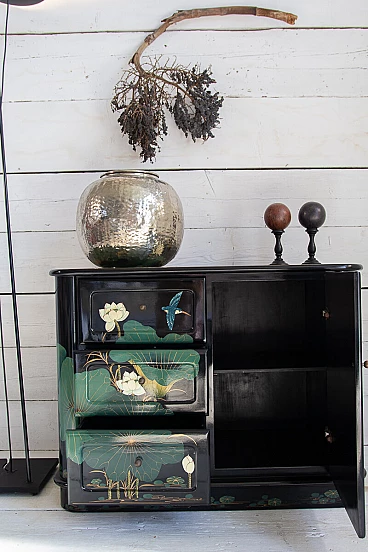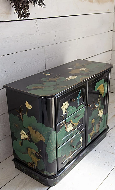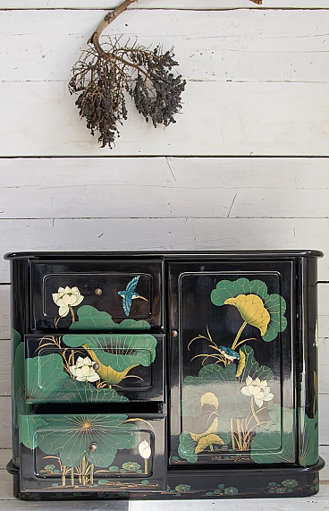 Credenza da ingresso in legno laccato in stile giapponese, anni '70