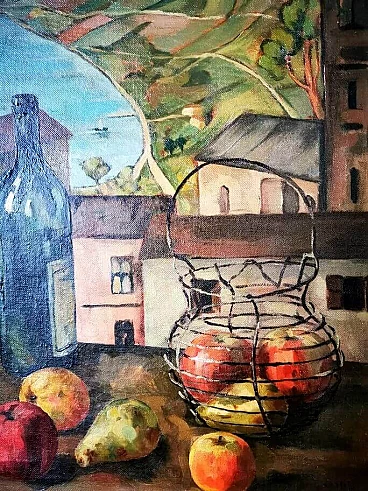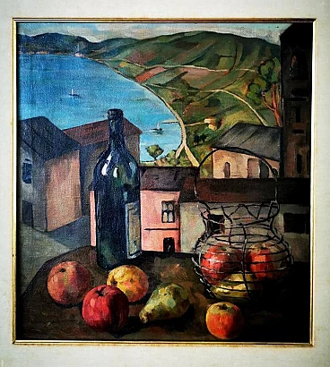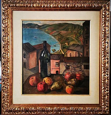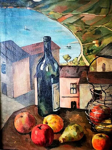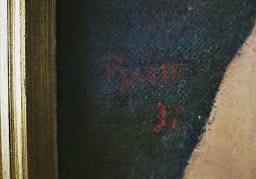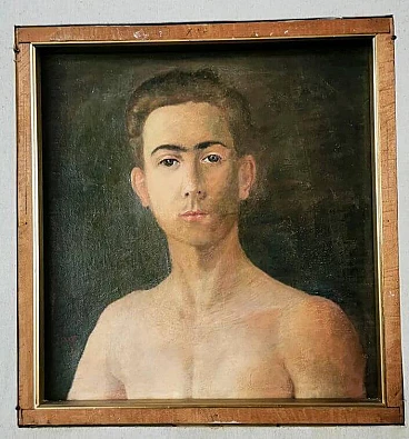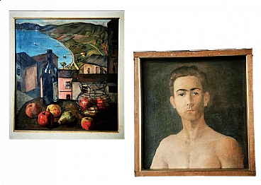 Rossi, natura morta - Paretti, ritratto maschile, dipinto a olio su tela fronte-retro, anni '30