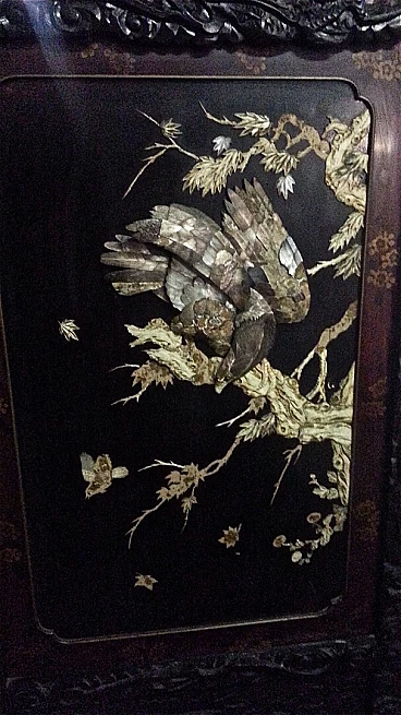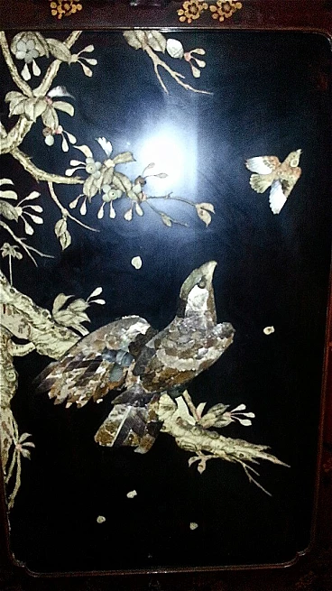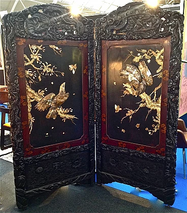 Paravento cinese in legno laccato a due ante, fine '800