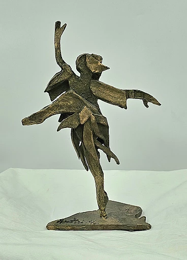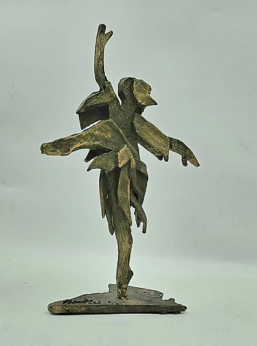 Scultura in lamina di bronzo di ballerina classica, anni '50