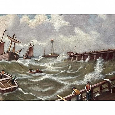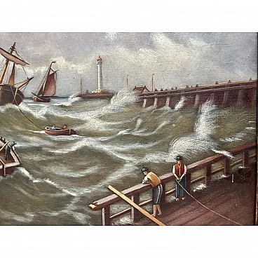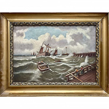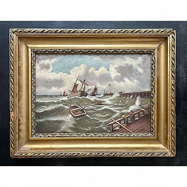 Paesaggio marino con navi, olio su tela, 1910