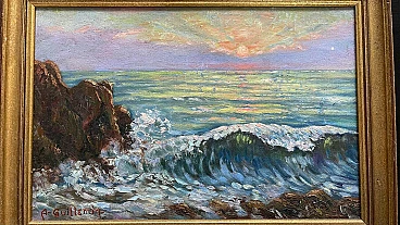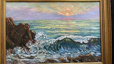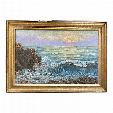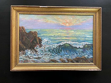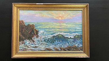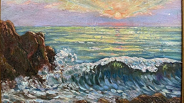 Tramonto sul mare, dipinto a olio su tavola, anni '50