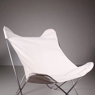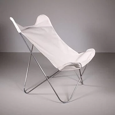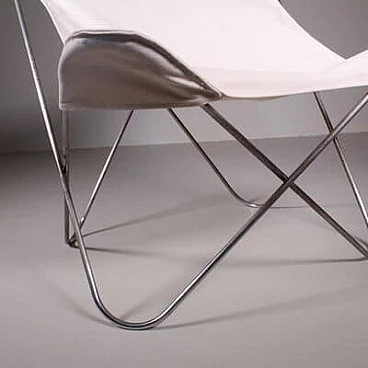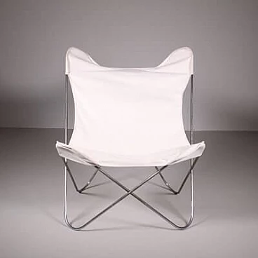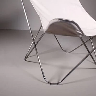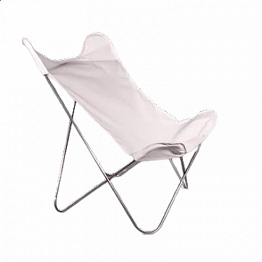 Sedia Tripolina in acciaio e tessuto bianco, anni '60