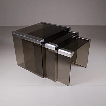 3 Tavolini a nido in vetro fumé e metallo di Gallotti&Radice, anni '70