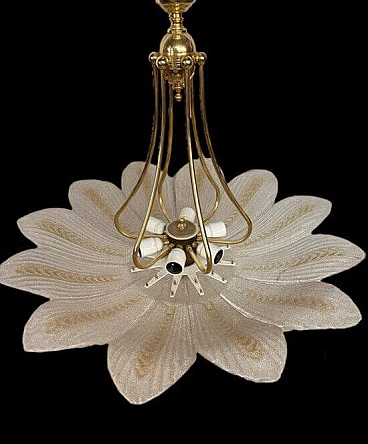 Lampadario con 12 foglie in vetro di Murano, fine '900