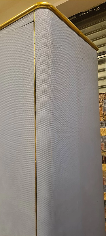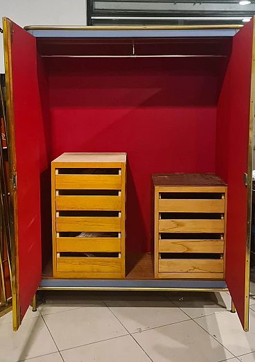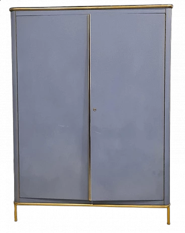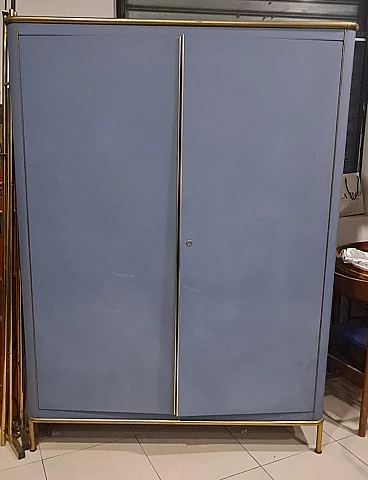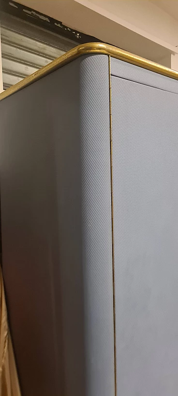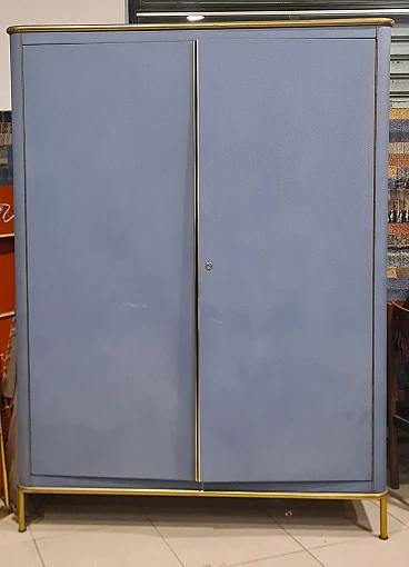 Armadio in skai azzurro con profili in metallo dorato, anni '60