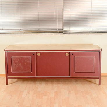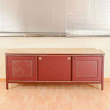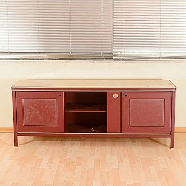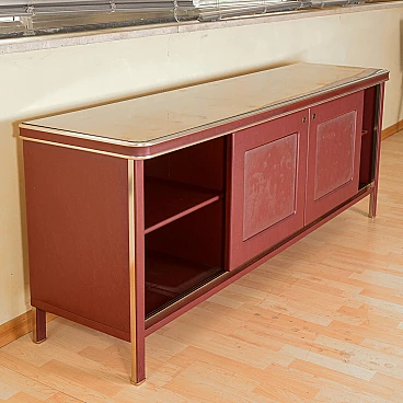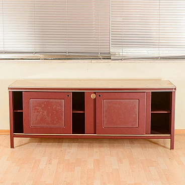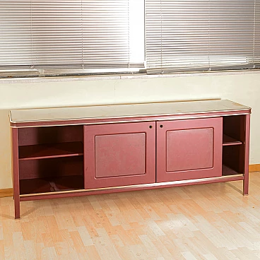 Credenza in similpelle bordeaux, vetro e metallo di Umberto Mascagni
