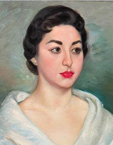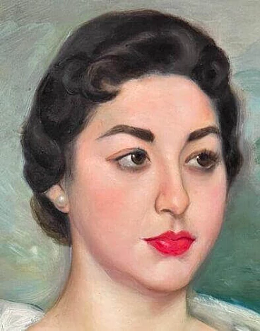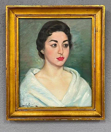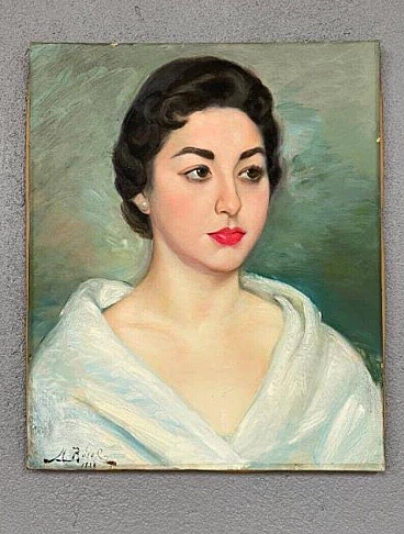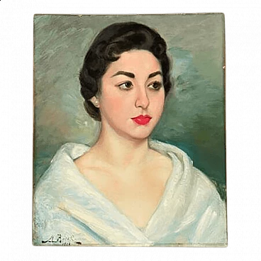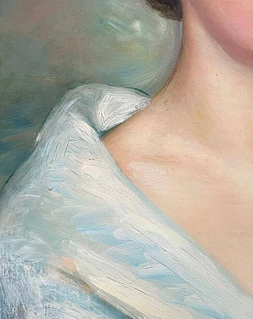 Ritratto femminile stile Art Nouveau, dipinto a olio su tela, anni '60