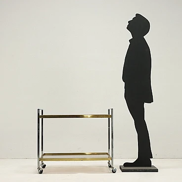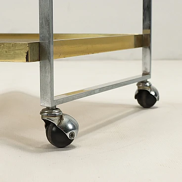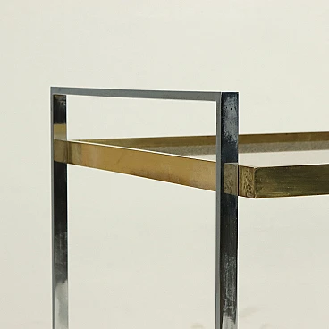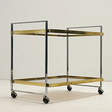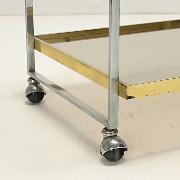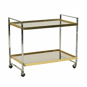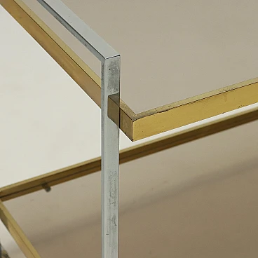 Carrello in metallo, ottone e vetro fumé, anni '60