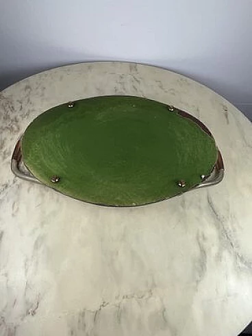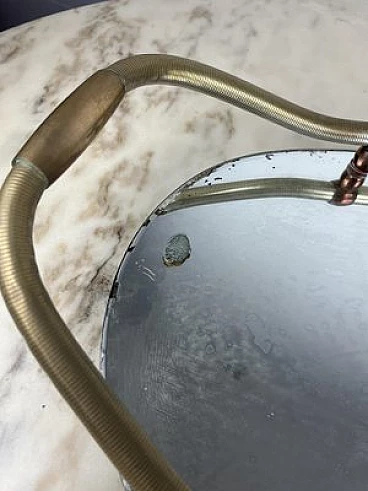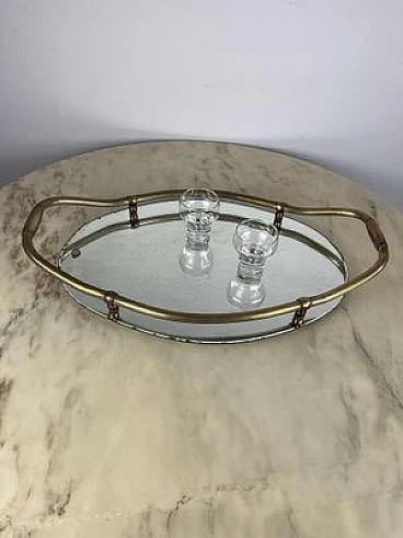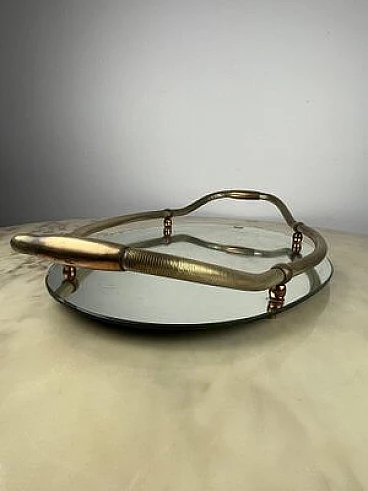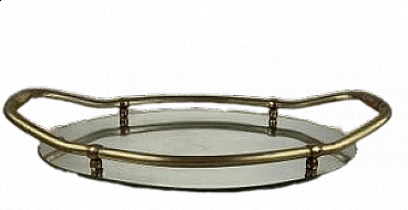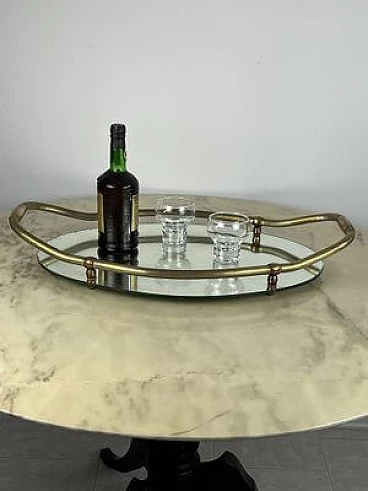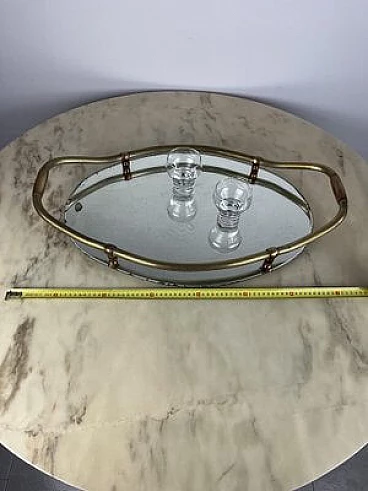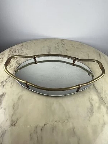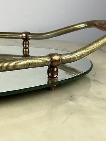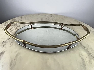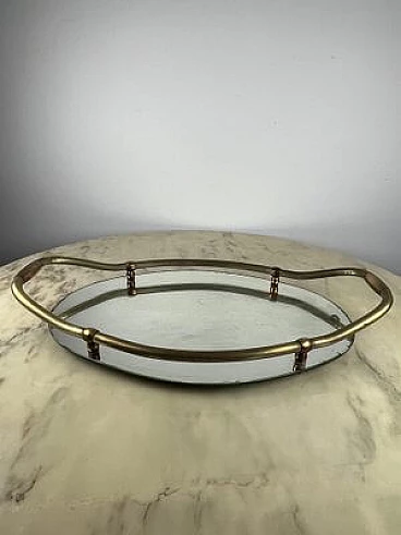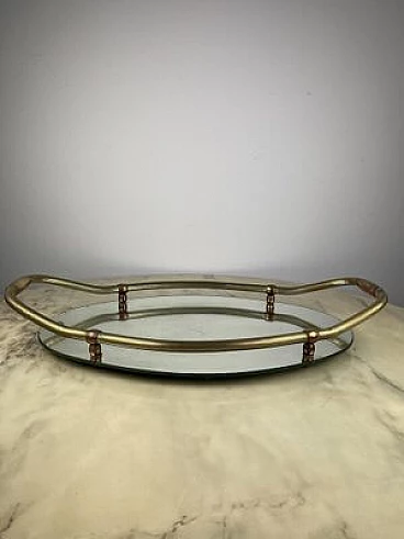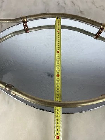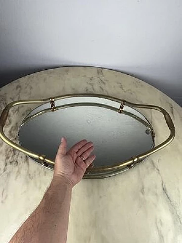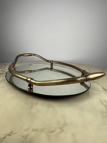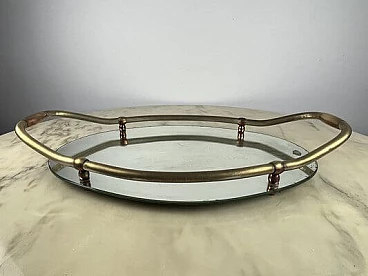 Vassoio ovale in ottone e specchio, anni '40