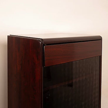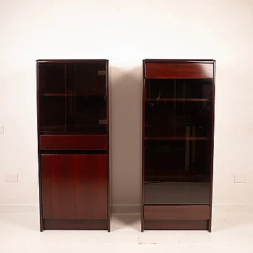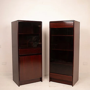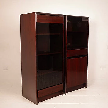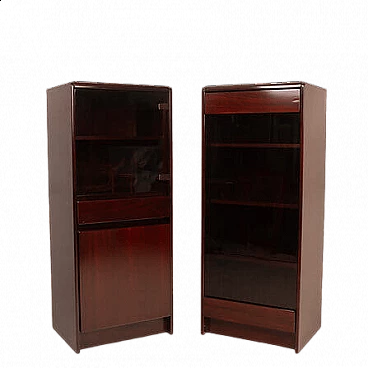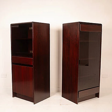 Coppia di mobiletti Daniel di Paolo Piva per FAMA, anni '70. Iconica creazione realizzata dalla rinomata ditta FAMA di Adria e concepita da Piva all'inizio della sua illustre carriera. Questi mobili rappresentano un prezioso esempio di artigianato italiano e qualità, realizzati in un bellissimo palissandro africano e dotati di antine in vetro fumé. Questi mobiletti/armadietti, oltre a essere un'espressione di eccellenza nel design, sono un omaggio alla carriera di un designer che ha segnato la storia del design. Piva ha iniziato la sua carriera con questa straordinaria serie, che oggi rappresenta un autentico pezzo di collezione. In condizioni impeccabili e senza segni evidenti del passare del tempo, questi mobiletti incarnano l'estetica senza tempo del design italiano. Citati in "Repertorio del design italiano 1950-1980" di G. Gramigna.