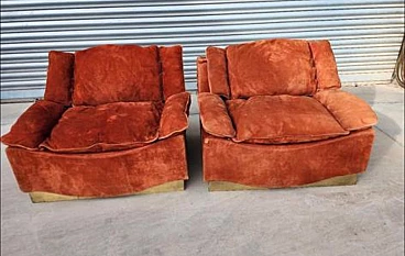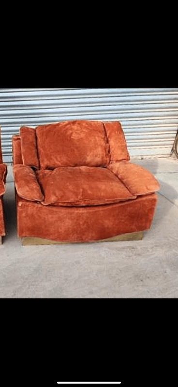 6 Poltrone in Alcantara e ottone di Luciano Frigerio, anni '70