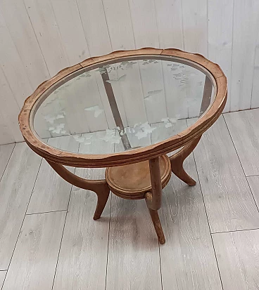 Tavolino da caffè in legno e vetro attribuibile Osvaldo Borsani, anni '40