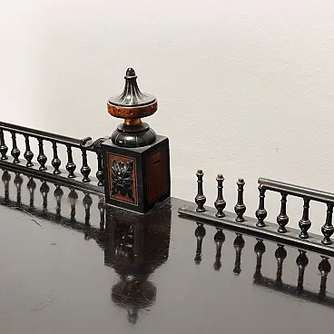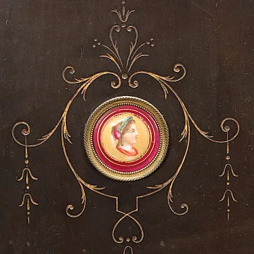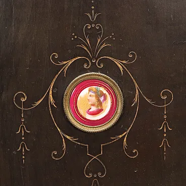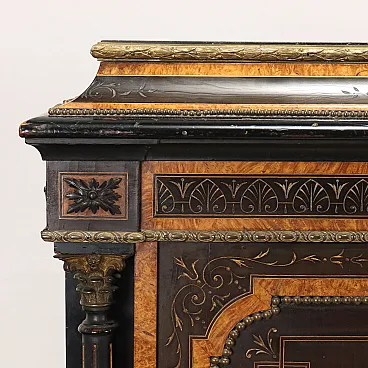 Credenza inglese in legno impiallacciato e intarsiato con specchio, inizio '900