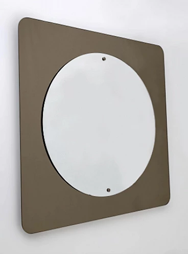 Specchio da parete in vetro bronzo fumé, anni '70