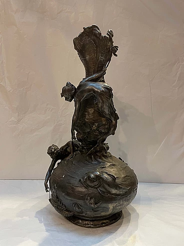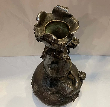 Vaso Art Nouveau in metallo sbalzato e cesellato di Lebrun, anni '30