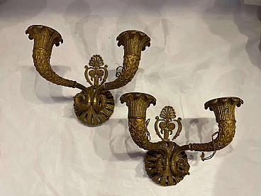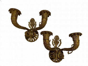 Coppia di applique stile Barocco in bronzo dorato cesellato, fine '700