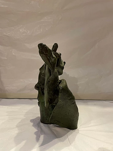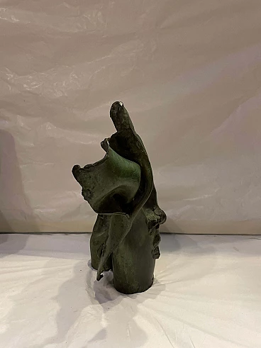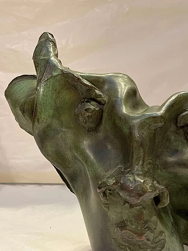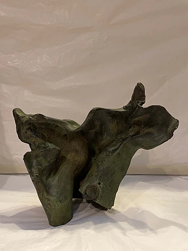 Scultura di toro astratto in bronzo patinato verde